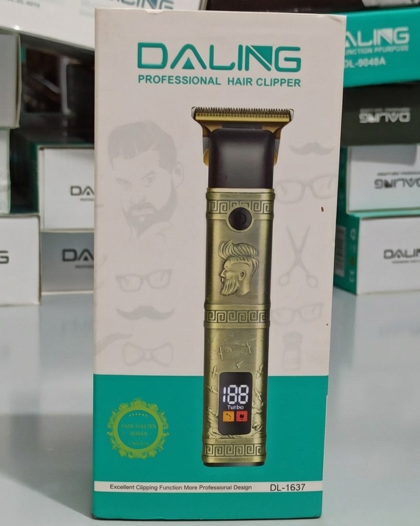Equipped with a digital LED display, the clipper shows battery percentage and turbo mode status, allowing full control during use. The powerful motor ensures consistent performance with low noise and minimal vibration. Its rechargeable battery provides long-lasting usage, making it reliable for continuous grooming sessions. Lightweight and ergonomically designed, the Daling DL-1637 offers comfortable handling and effortless control for professional results every time.