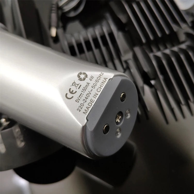The ergonomic, metallic body provides a comfortable, secure grip for full control during detailed trimming and long grooming sessions. Its cordless rechargeable design offers freedom of movement, while the long-lasting battery ensures reliable use with minimal interruptions. Adjustable guide combs allow you to easily customize cutting lengths for fades, trims, and sharp finishing.