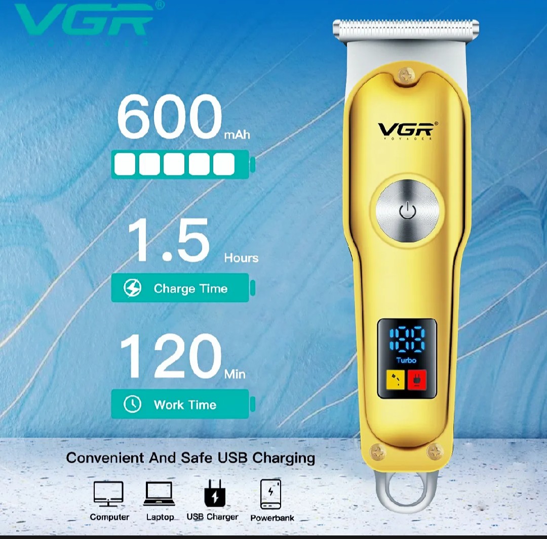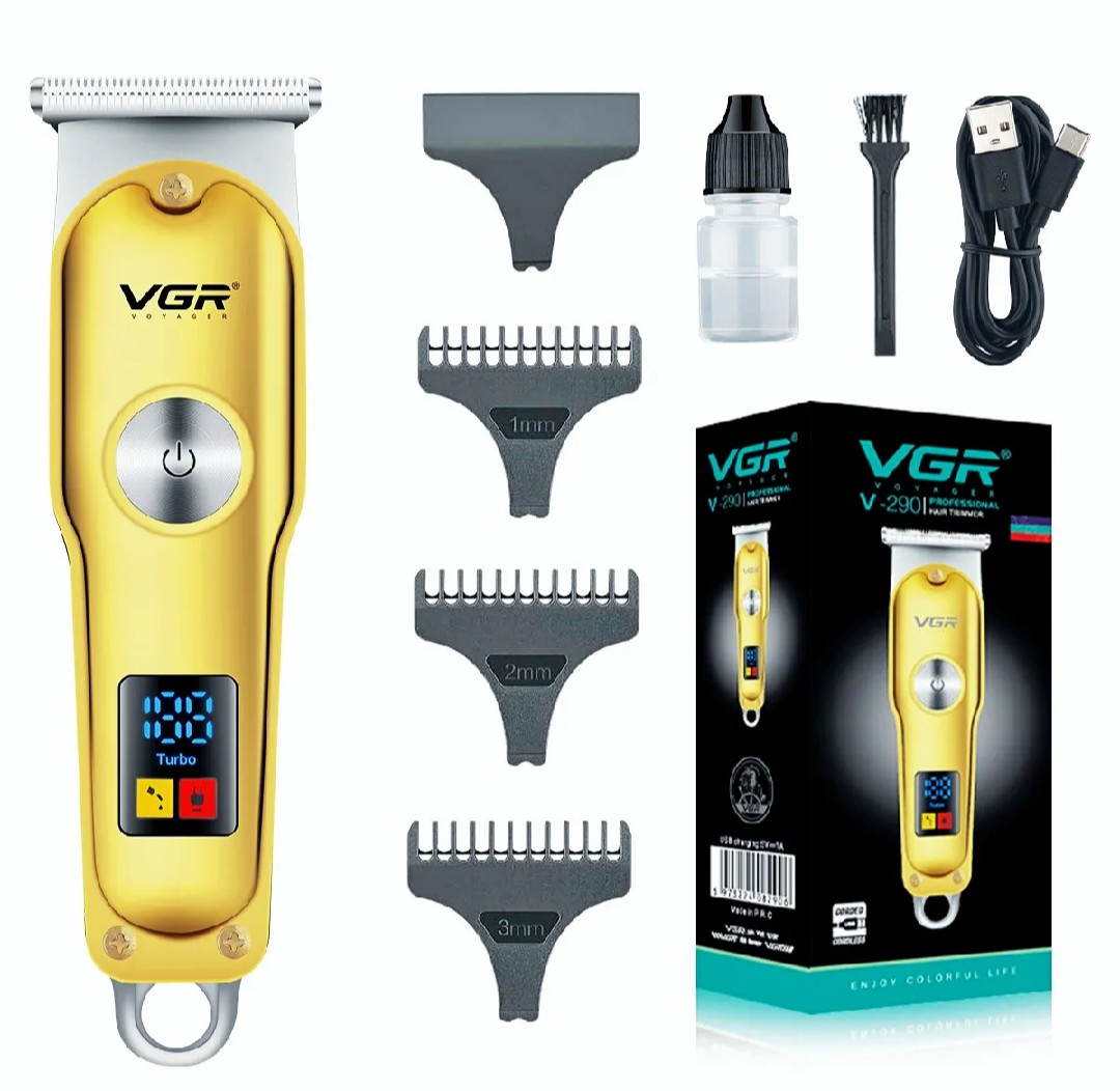 The VGR V-290 Professional Hair Clipper is a high-performance grooming tool designed for both home and professional use. Equipped with precision T-blades and a powerful motor, this cordless/corded clipper delivers clean, accurate cuts with minimal pulling or snagging — perfect for haircuts, fades, beard shaping, and detailing.Equipped with a digital LED display, ELITE shows battery status and working modes clearly, keeping you in full control during grooming. The turbo power mode ensures extra strength for thick or coarse hair, making trimming fast and effortless. Its rechargeable battery offers long-lasting performance and charges conveniently via USB, making it perfect for both home and travel use.
